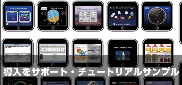emWinでは、評価ボードに実装可能なサンプルアプリケーションと合わせてemWinの各機能APIの動作、ソースイメージを確認できるチュートリアルサンプルを提供しています。これにより開発者様は効率的にemWinの利用方法を習得することができます。