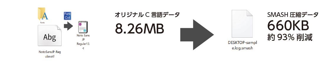 以下、サンプルデータは、「emCompress ToGo 評価版」に同梱されているWindows アプリケーション「Smash.exe」で圧縮したものです。