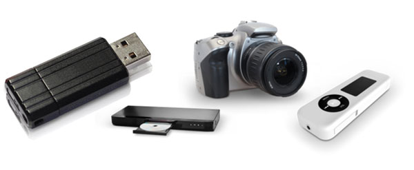 USBハードディスクドライブ、USBメモリーディスク、カメラ、MP3プレーヤー、DVDプレーヤー